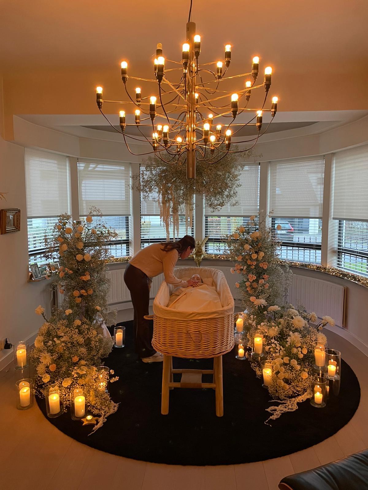 Als je de mogelijkheid hebt, zou ik iedereen adviseren om te laten balsemen en thuis op te baren. Vooral de overgang van volledig (lichaam en ziel) naar het definitieve afscheid is zo mooi op deze manier. Elk moment van de dag kun je even bij haar zijn. Zo mooi …….